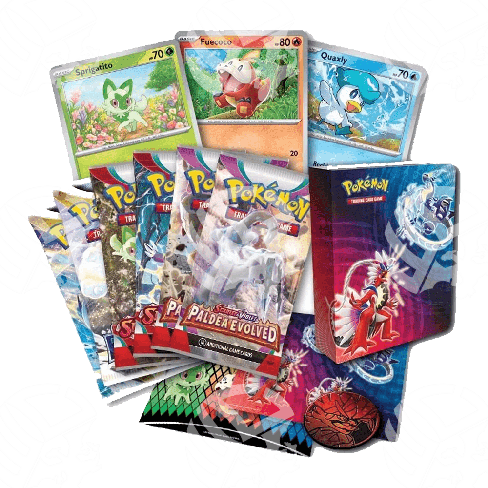Entra in campo con tutta l'energia che sei riuscito ad accumulare, e scagliala sul tuo nemico con estremo pregiudizio. Ora che sei arrivato alla terra di Paldea, la tua nuova avventura ti attende. Cosa aspetti? In questo bauletto trovi tante bustine per ampliare la tua collezione, e per renderti l'allenatore più abile di tutti.