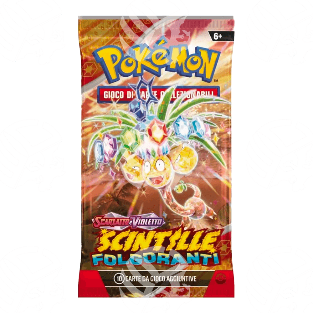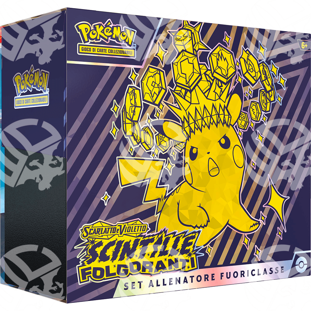 Paldea è una terra brulicante di vita in cui tanti Pokémon diversi coesistono, si evolvono e mostrano forme sfavillanti... ma in questo paradiso sta per essere percorso da una scarica di tuoni e scintille! Scopri la prossima invasione di Pokémon tipo Lampo e di draghi possenti, con le carte di Scintille Folgoranti!